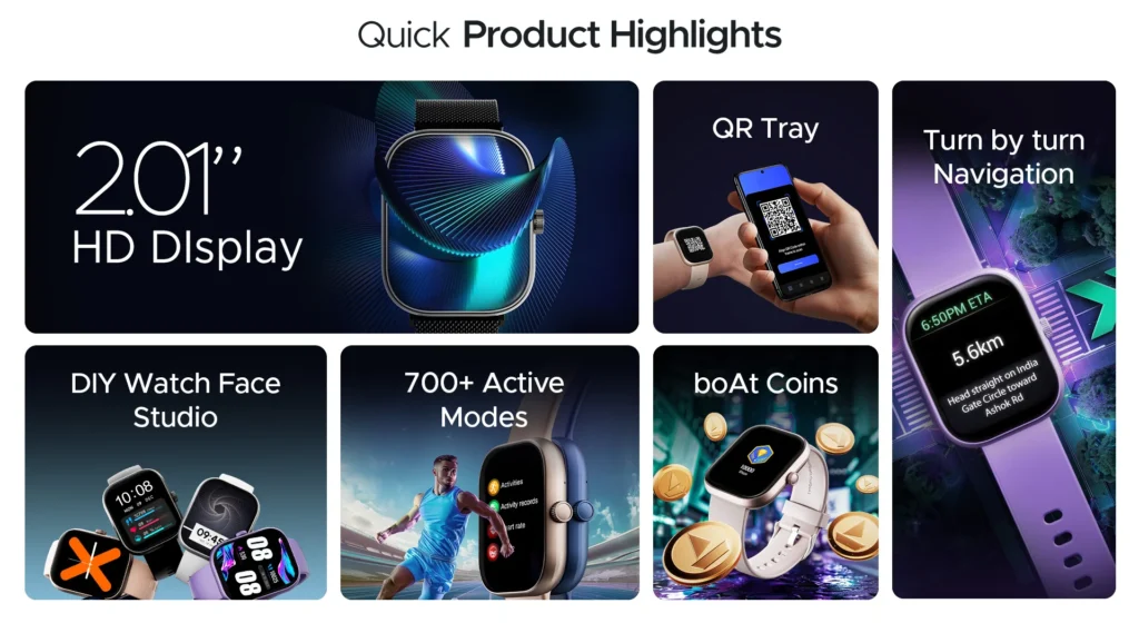 This is very smart and decent smart watch it has 973 watch faces that is one of the amazing feature and it has many other features like live scoring update and all..5 star product from boAt.