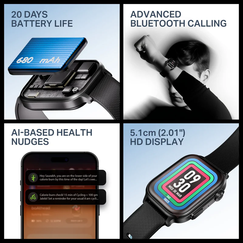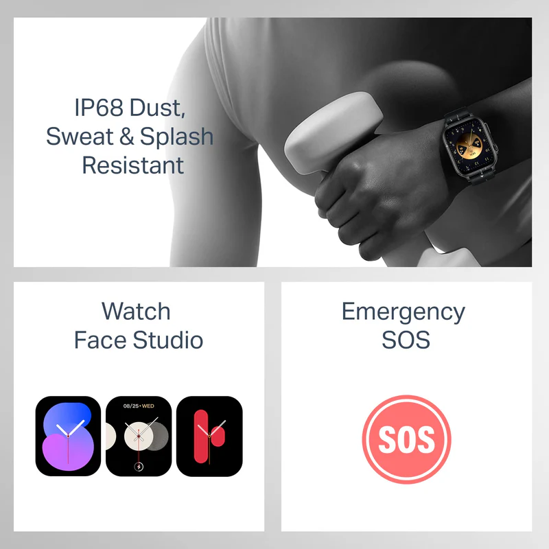 3.  IP68 Dust, Sweat & Splash Resistant: Designed to endure your active lifestyle, the watch comes with IP68 protection, making it resistant to dust, sweat, and accidental splashes.